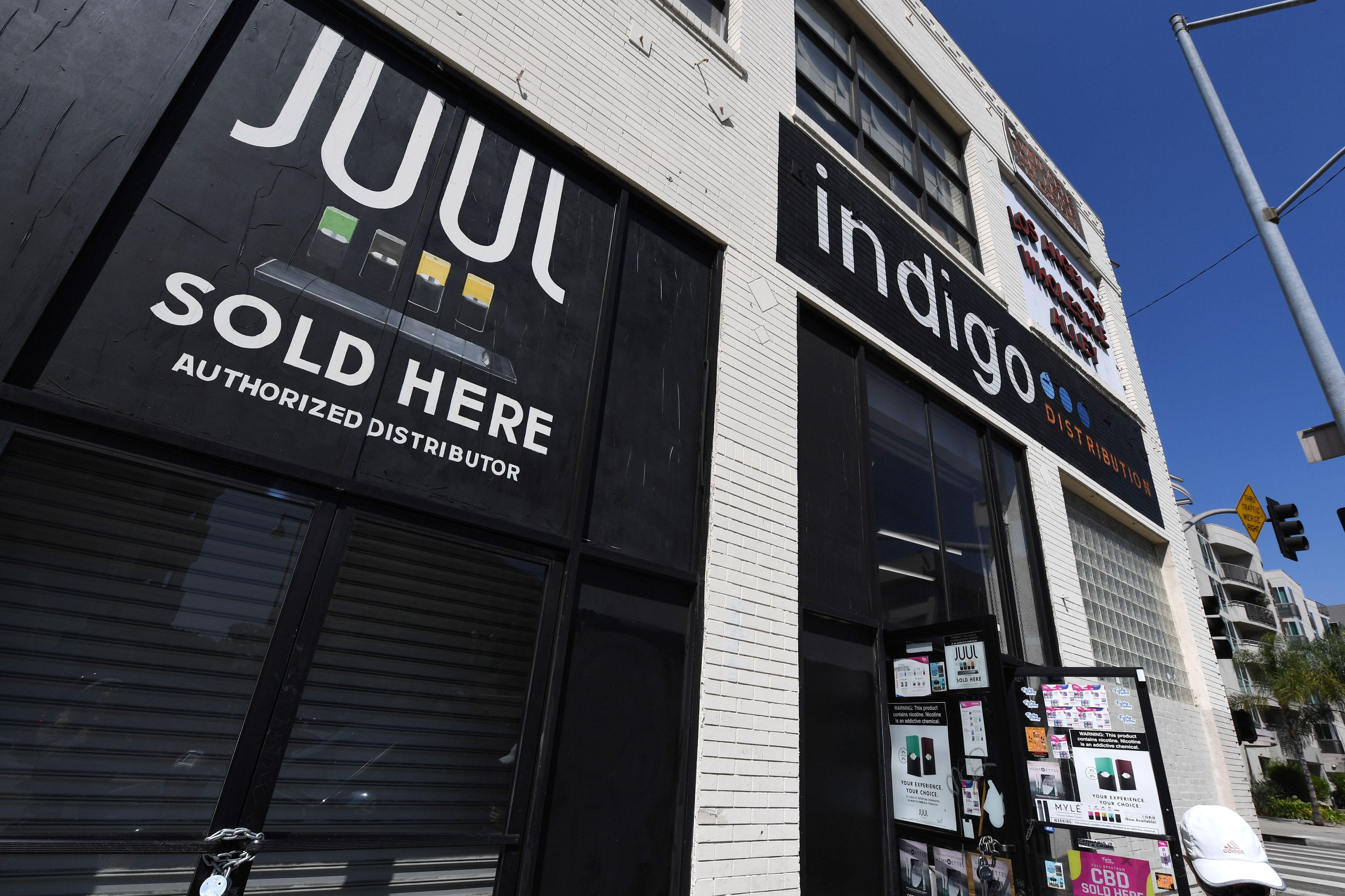 A sign advertises Juul vaping products in Los Angeles, California, September 17, 2019.
