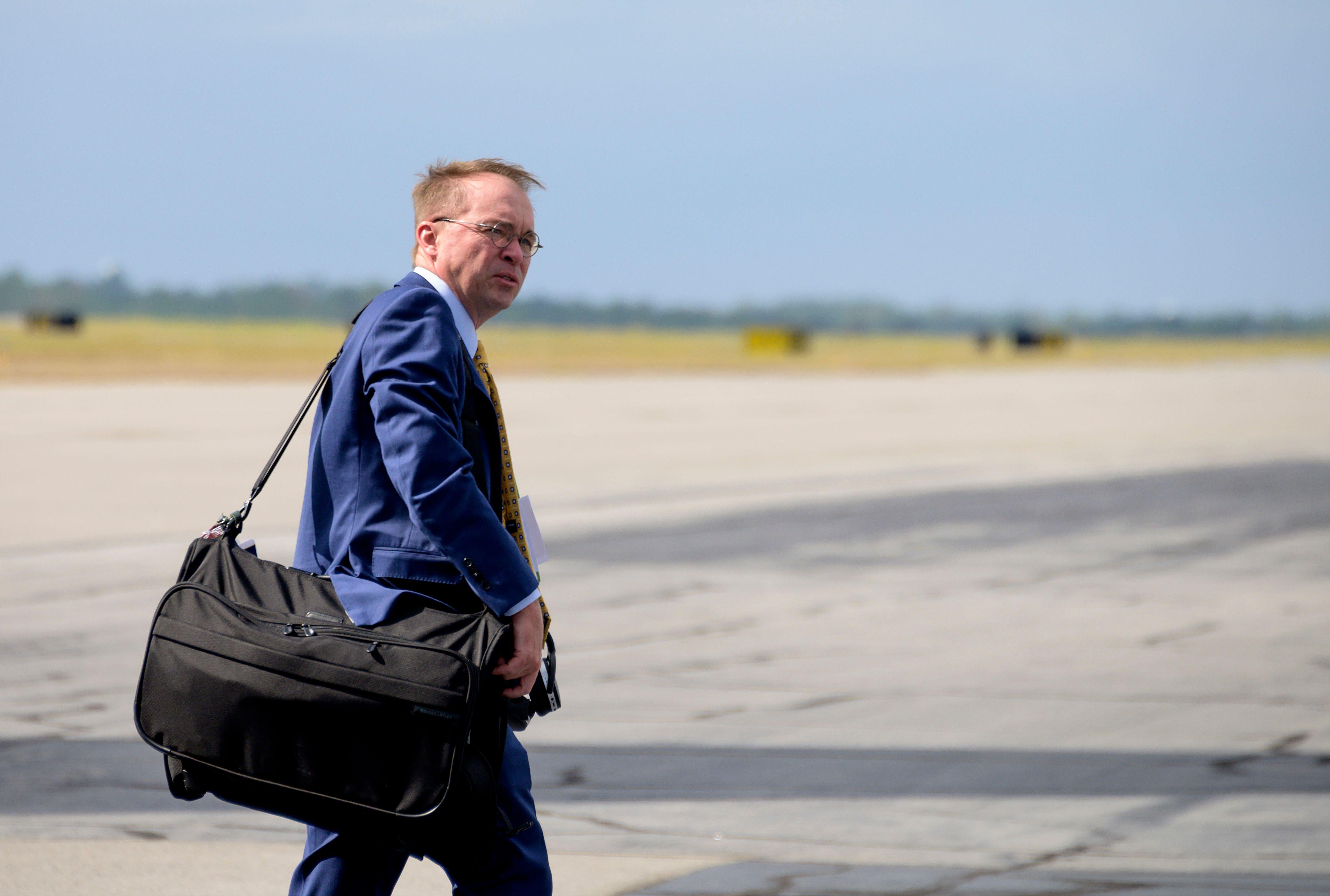 White House Acting Chief of Staff Mick Mulvaney arrives in Columbia Metropolitan Airport in Columbia, South Carolina, on October 25, 2019.