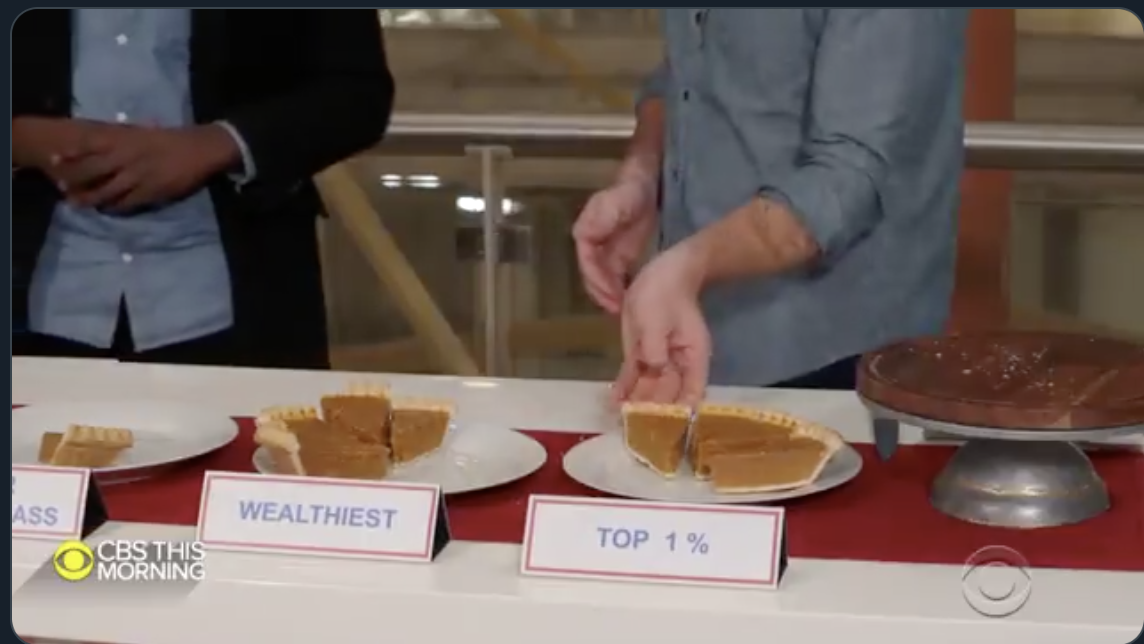 CBS This Morning co-host Tony Dokoupil divides up pie slices to illustrate inequality in a segment aired on Jan. 31, 2020.